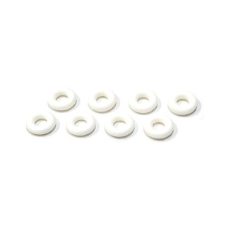 ダンパーシャフト支持部の精度を高めて、ダンパーシャフト部分のガタを減らす事により、ダンパーピストンのガタも減ります。この部分のガタを極力少なくして、ダンパーの減衰量を安定させるマニア向けのパーツです。デルリン素材から削り出されたパーツが走りを変えます!交換すると誰もがダンパーが作動している時の剛性感が体感出来ます!ダンパー純正の黒い樹脂パーツと交換して使用します。
