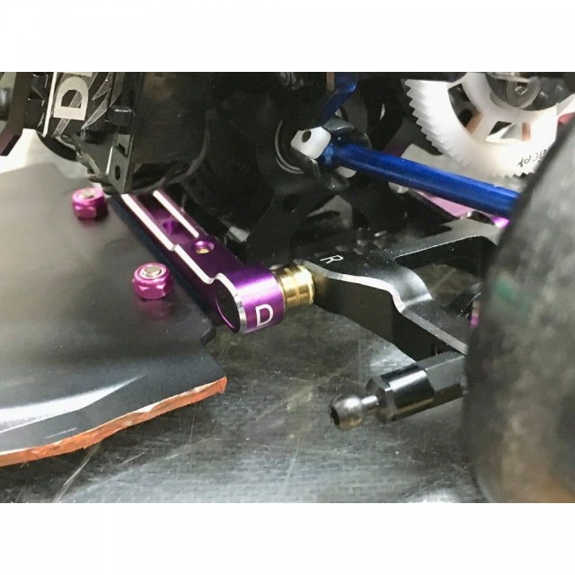 ■HTブラスM3スペーサーは取り付ける場所によって接地感の向上が見込めます。例えば、ロアサスアームのホイールベース調整用やナックルのアッパーアーム取り付け部など用途は様々です。いろいろと試してお気に入りのところに組んで、トラクションUPしてくださいね♪