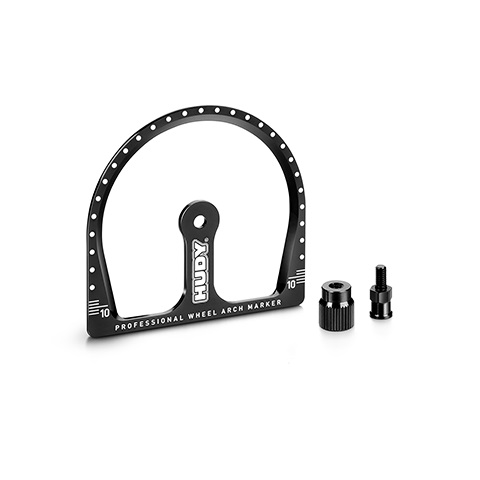 HUDY professional 1/10 TC wheel arch marker allows to make the wheel arches on bodyshell in a quick and simple way, and most importantly, the same way every time. This smart tool is suitable for use on both 1/10 TC electric, as well as nitro classes. Features aluminum wheel adapter and wheel nut for maximum comfort. CNC-machined from aluminum, black coated and laser engraved with the body ride height scale. The task of cutting out bodyshell just became a lot easier.