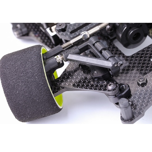 フロントサスアームの上側に取り付ける事で、カーボンロアアームのねじれや走行中の反りを抑え強化する事でハンドリング特性に変化を与えます。走行するサーキットの路面コンディションやレイアウトに合わせて、「プレートあり」「プレートなし」による微妙な味付けを簡単に施す事が可能となります!