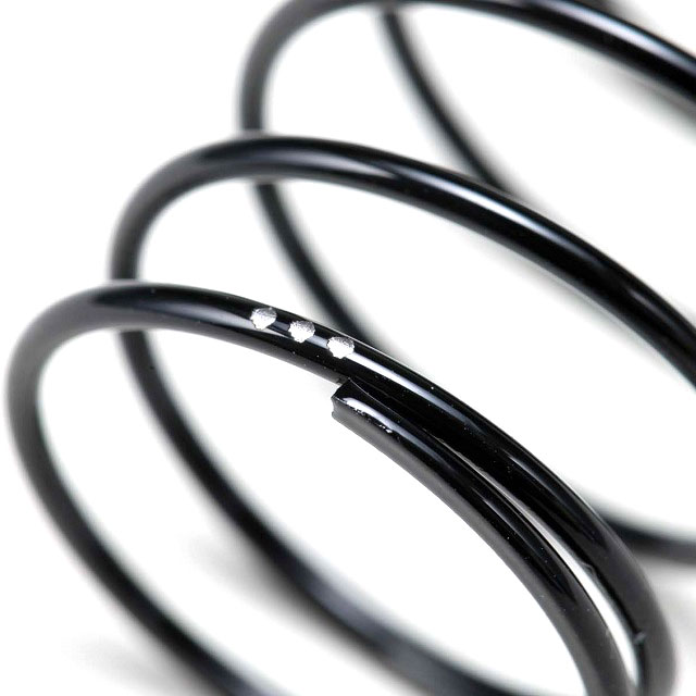 スプリングの硬さは巻き数によってレーザー刻印されますが、DOT の数が多いほど硬いスプリングとなります。