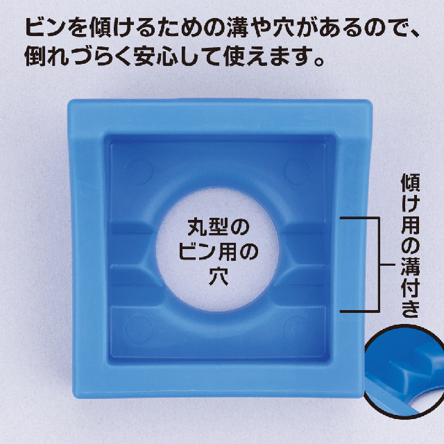 内底に溝が付いており、接着剤などのビンを傾けて置くことができます。