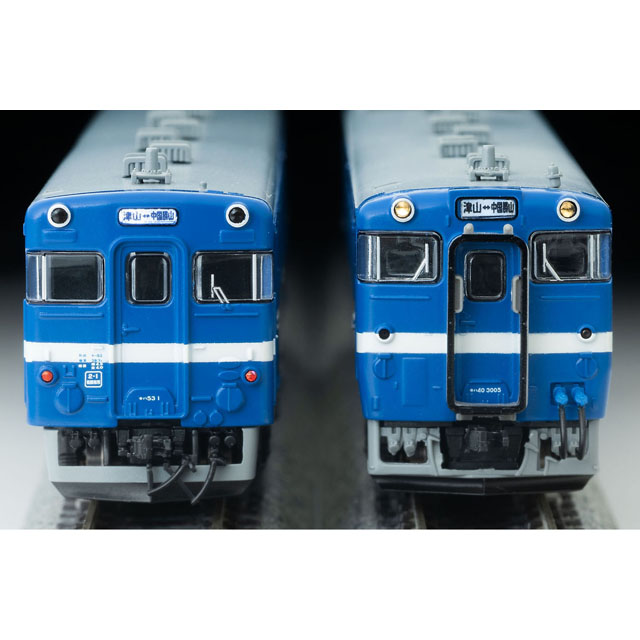 ● 津山鉄道部所属車のうち、1990年代にワンマン対応車に塗られた青23号+白帯塗装塗装車を2両セットで製品化