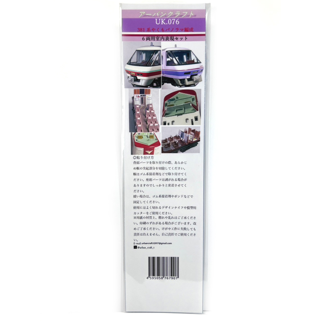 381系やくもパノラマ編成6両用室内表現セット [UK076] メーカー アーバンクラフト 品番 UK076 商品名 381系やくもパノラマ編成6両用室内表現セット [UK076] 定価(税込) ¥ 2,750 特価(税込) ¥ 2,475 送料区分 送料小① 送料小① 基本配送料:680円 1個口に何点含まれていても「送料小 680円」 利用規約(送料説明)の表示 ※詳しい送料説明 オンラインショップの在庫状況 オンラインショップ 在庫わずか 店舗別の在庫状況 大阪日本橋店 在庫わずか 東京秋葉原店 在庫切れ 福岡博多店 在庫切れ 【有料】ラッピングサービス ラッピングサービスを希望される場合は、商品と一緒に対応するサイズのラッピングサービスをカートに入れてご注文ください。 ラッピングをご希望の方はこちら 数量 個 この商品へのお問い合わせ KATO用381系やくもパノラマ編成 6両室内表現ステッカーになります。ゆったりやくも用の内装ですが、リバイバルにも対応できるようクロ380の2+2の床ステッカーも付録します。 車端部壁、デッキ壁、座席カバー、床ステッカーの内容です。