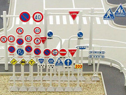 ・道路には欠かせない「道路標識」「道路名表示」のランナータイプアクセサリー。取り付けベース付き。表示部分は、すべて印刷済みです。