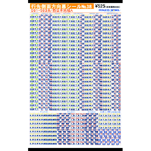 - 行先側面方向幕シール 581・583系/西日本地域A [PG-38]